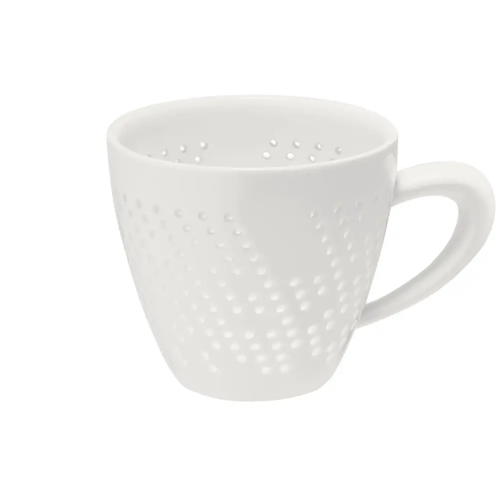 Чашка Coralli Rio — легкая, словно светящаяся изнутри посуда с легендарным узором «рисовое зерно». Благодаря тонкому слою прозрачной глазури кружка выглядит кружевной и ажурной, при этом напиток гарантированно остается внутри.