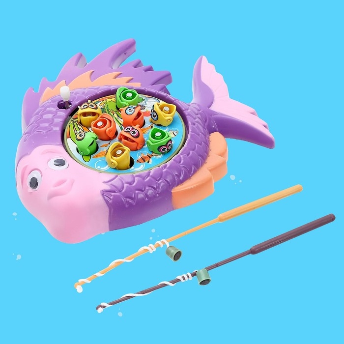 В комплект входят две магнитные удочки, которые позволят деткам соревноваться друг с другом. Кто первым сумеет выловить всех обитателей «водоёма», тот одержит победу!