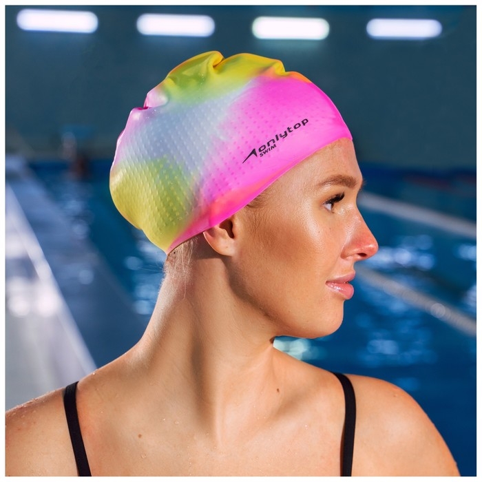 Шапочка для плавания ONLYTOP, силиконовая, обхват 54-60 см, цвета МИКС