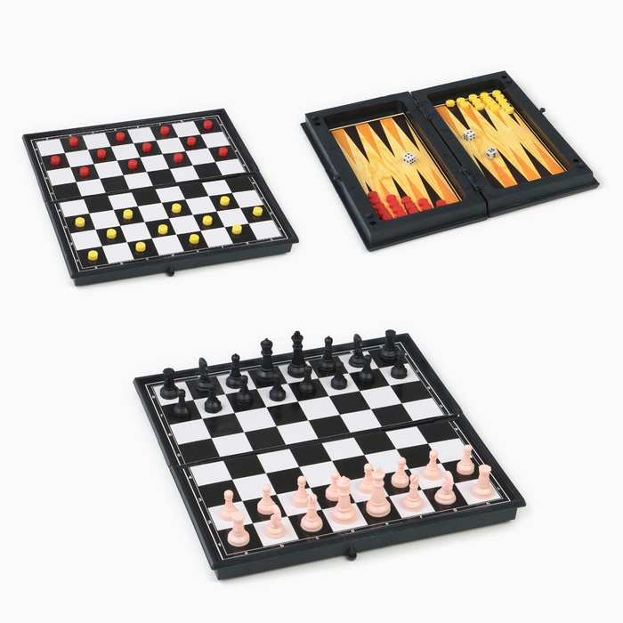 Шахматы, шашки, нарды, настольные игры, набор 3 в 1, 19 х 19 см