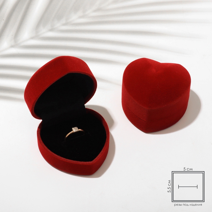 Футляр бархатный под кольцо «Сердце» 6×6,5×4, цвет бордовый, вставка черная