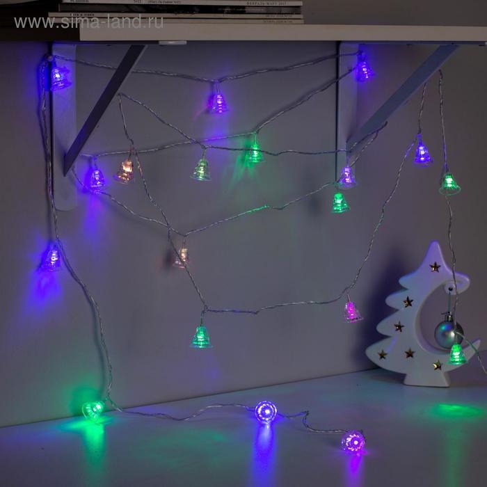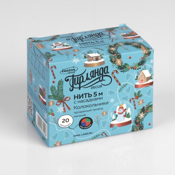 Гирлянда «Нить» 5 м с насадками «Колокольчики», IP20, прозрачная нить, 20 LED, свечение мульти (RG/RB), мигание, 220 В