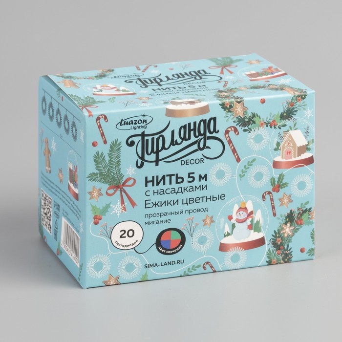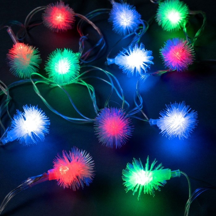 Гирлянда «Нить» 5 м с насадками «Ёжики», IP20, прозрачная нить, 20 LED, свечение мульти (RG/RB), мигание, 220 В