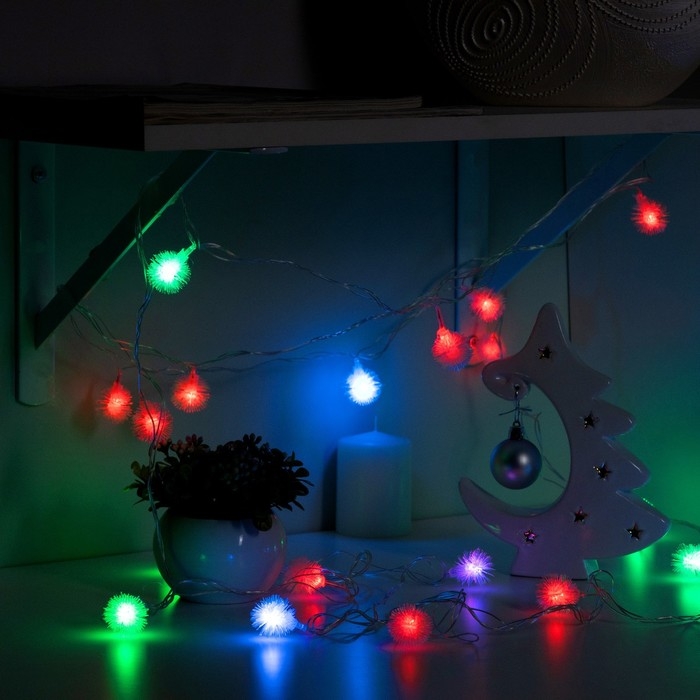 Гирлянда «Нить» 3 м с насадками «Шарики», IP20, прозрачная нить, 20 LED, батарейки AAх3 (нет в комплекте), свечение мульти