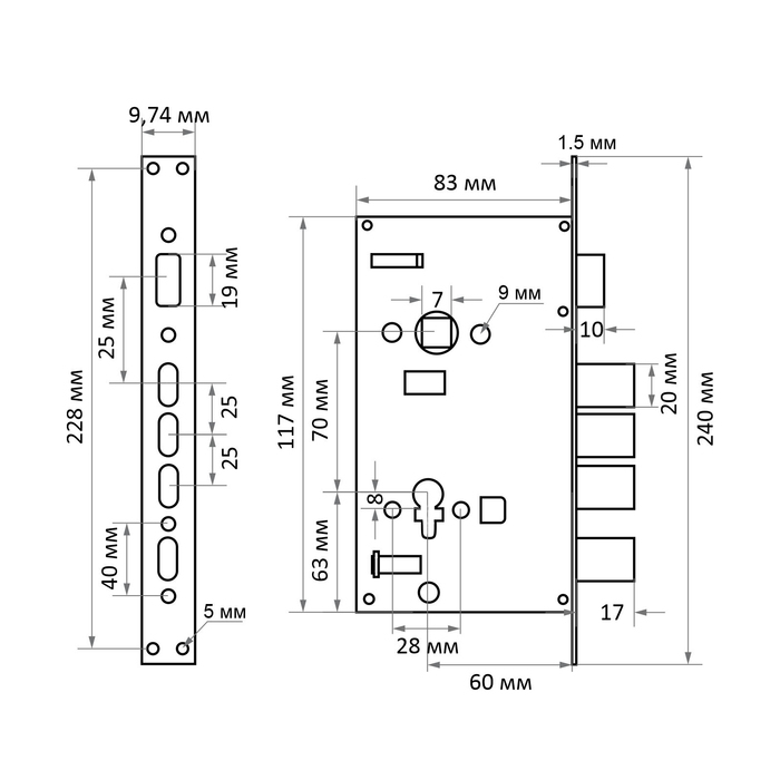 Комплект замка для китайской двери R2R, с ц/м, с ручками, правый