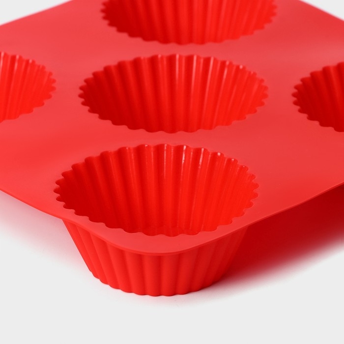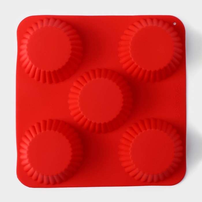 Форма для выпечки Доляна «Сладости.Круг реб», силикон, 18×18 см, 5 ячеек (6,5×6,5×3,5 см), цвет красный