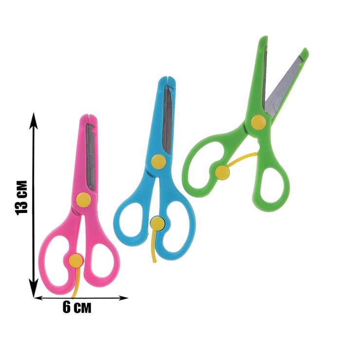Ножницы пластиковые 13 см, фиксатор, с металлическими лезвиями и закруглёнными концами, безопасные, МИКС