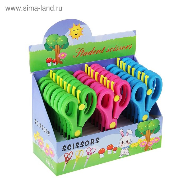 Ножницы канцелярские 13.5 см, пластиковые ручки, закругленные концы, блистер, корпус МИКС