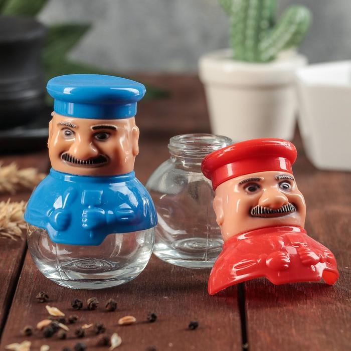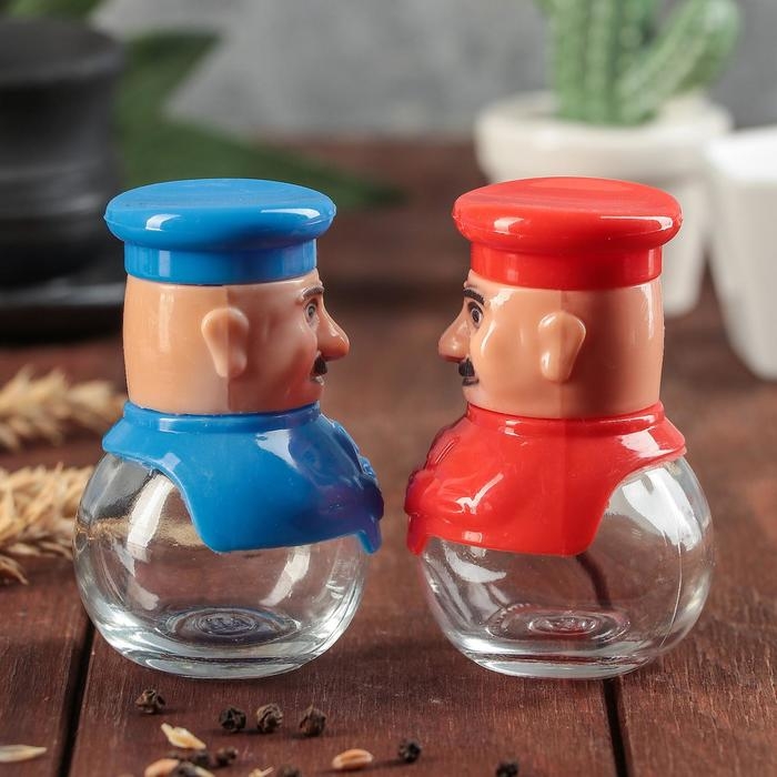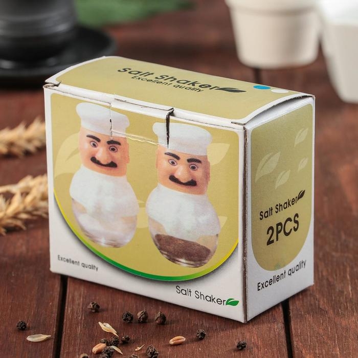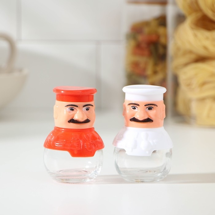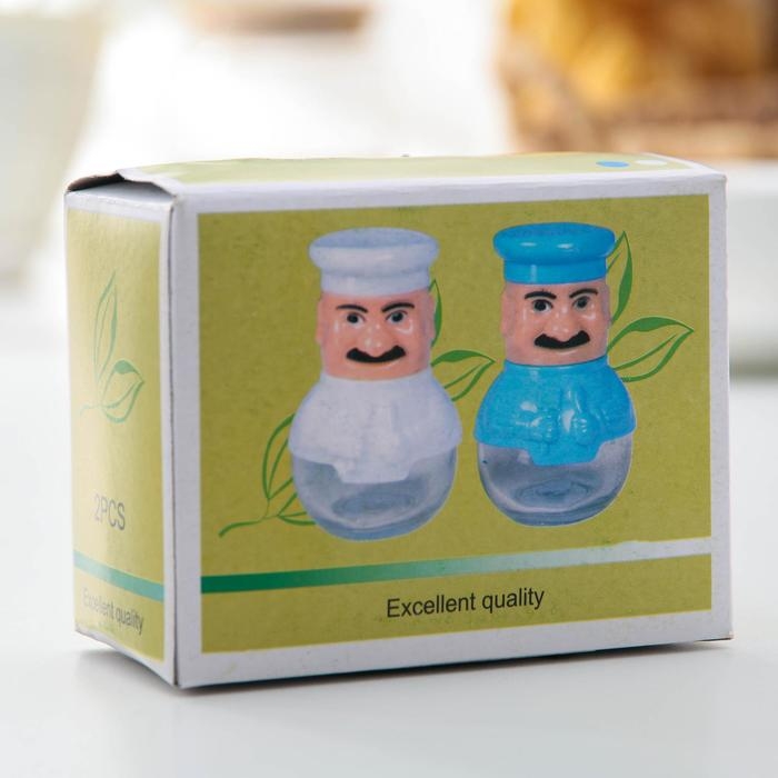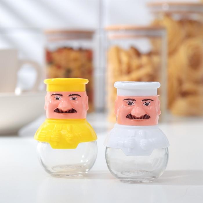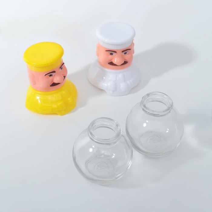 Набор для специй из стекла на подставке «Поварёнок», 2 предмета: солонка, перечница, цвет МИКС