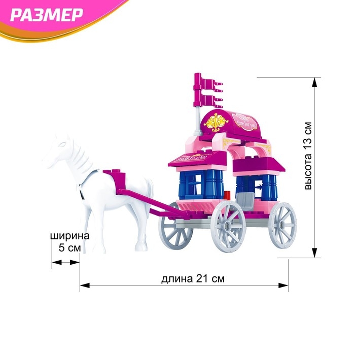 - Набор содержит 57 деталей и позволяет сконструировать карету и лошадку.
