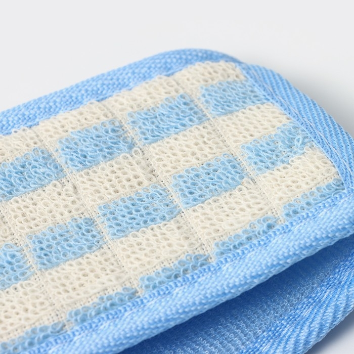 Мочалка для тела Доляна «Шашки», длинная, 70 см, цвет голубой
