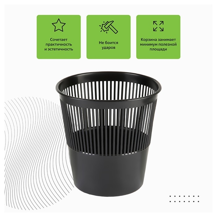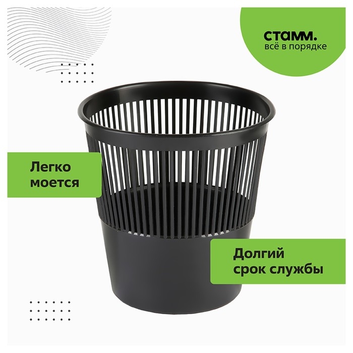 Корзина для бумаг и мусора Стамм, 9 литров, пластик, сетчатая, чёрная
