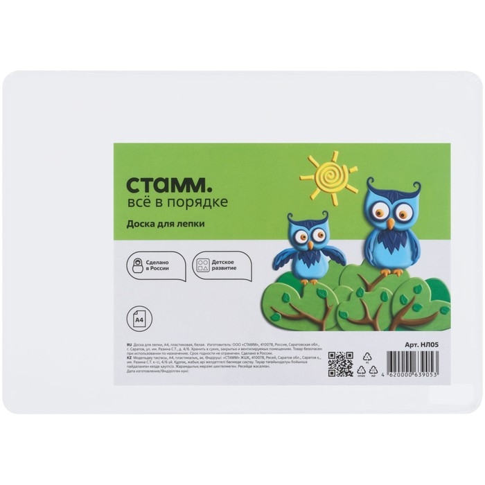 Доска формата А4 белая предназначена для лепки и моделирования из пластилина, полимерной глины.