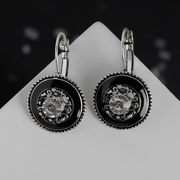 Серьги эмаль «Круг» изящность, цвет чёрный в серебре