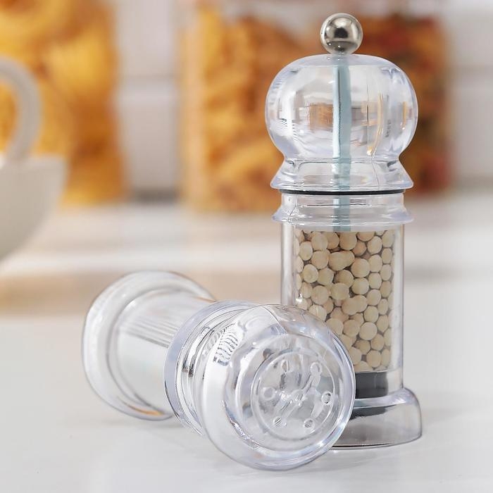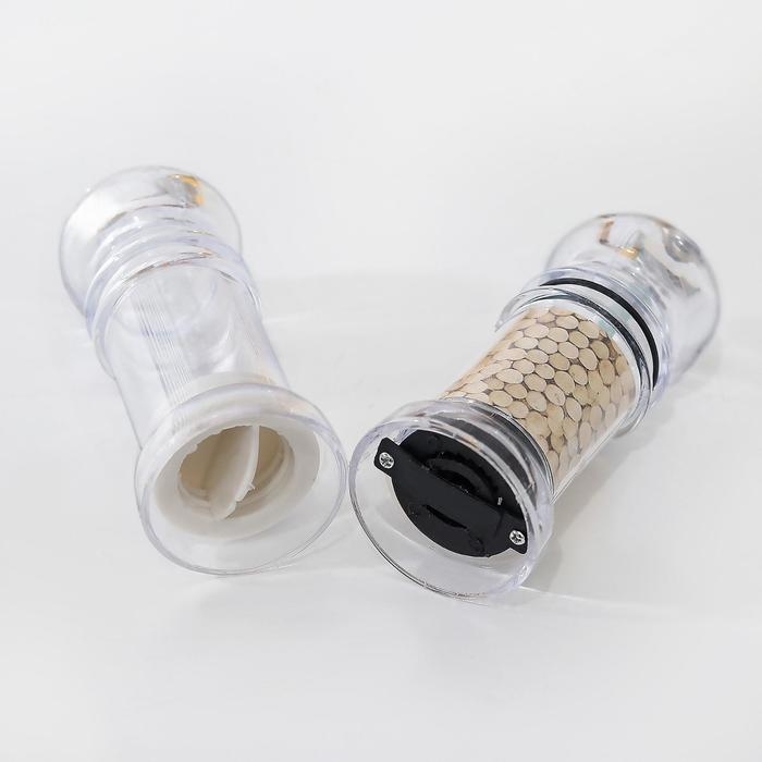 Набор для специй Доляна «Льдинки», h=10 см, 2 шт: мельница, солонка, цвет прозрачный