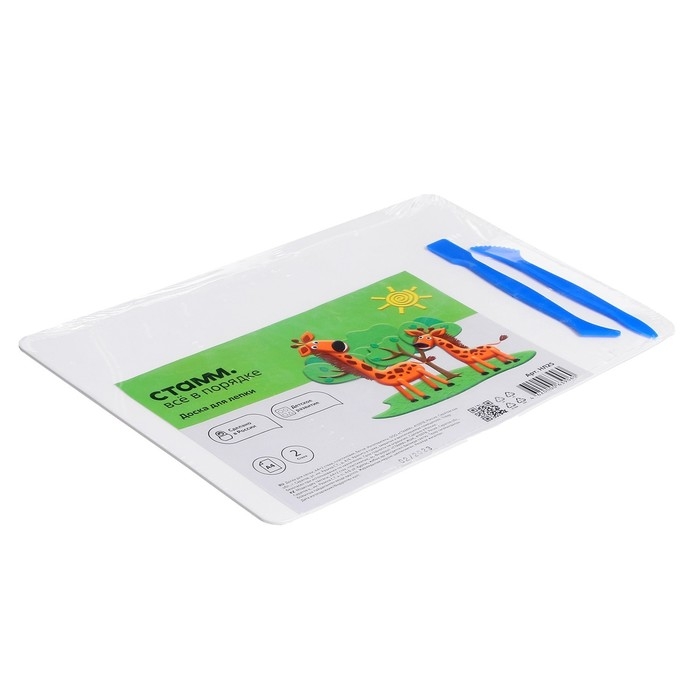 Доска для лепки Стамм, А4 + 2 стека, пластиковая, белая