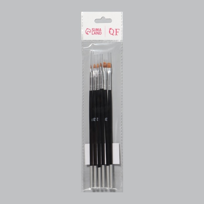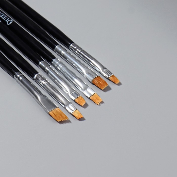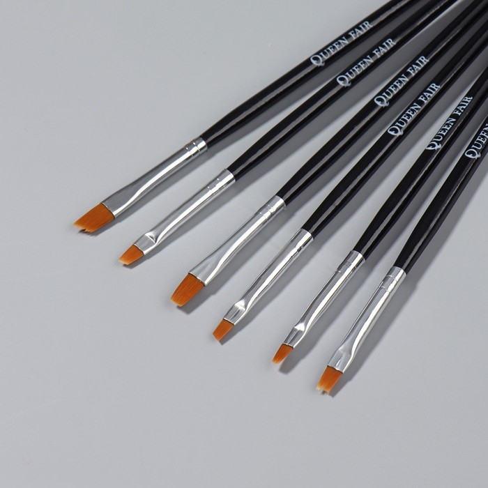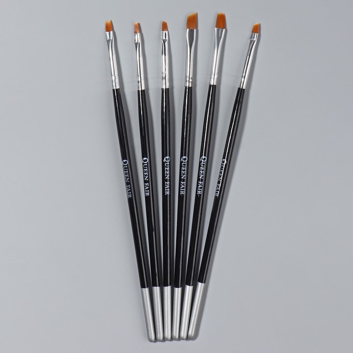 Набор плоских кистей для наращивания и дизайна ногтей, 6 шт, 18 см, цвет серебристый/чёрный