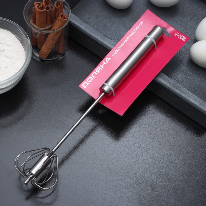 Миксер механический Доляна «Сильвер», 30 см, нержавеющая сталь предназначен для быстрого приготовления омлета, теста, коктейля и других смесей. Ручная модель удобна и проста в применении – для приведения в действие не требуется подключать ее к сети или вставлять батарейки. Венчик вращается за счет регулярного нажатия на ручку инструмента.