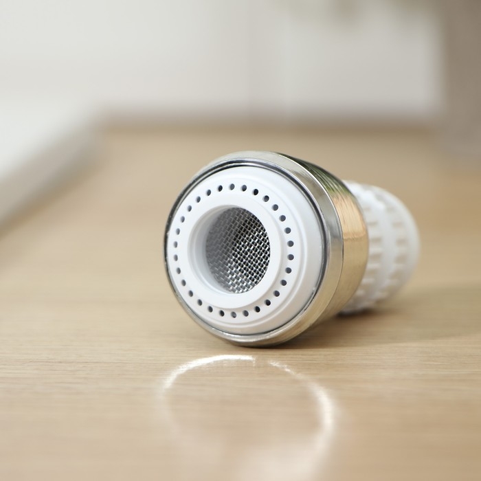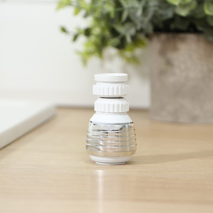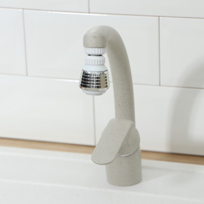 Поворотная насадка на кран Доляна, d=1,5 см, с изменяемым углом наклона и изменяемой интенсивностью струи, с сеткой
