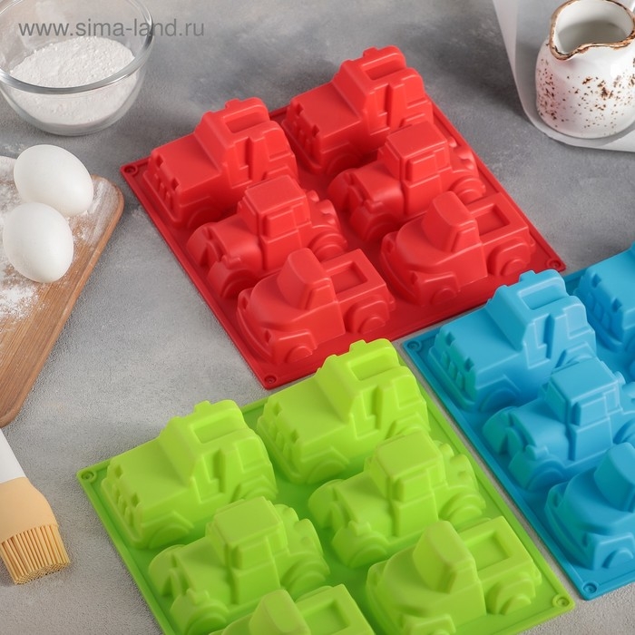 Форма для выпечки Доляна «Грузовик», силикон, 22×22 см, 6 ячеек (9,8×4,9 см), цвет МИКС
