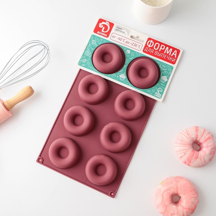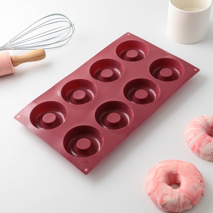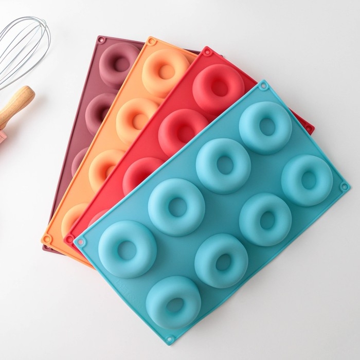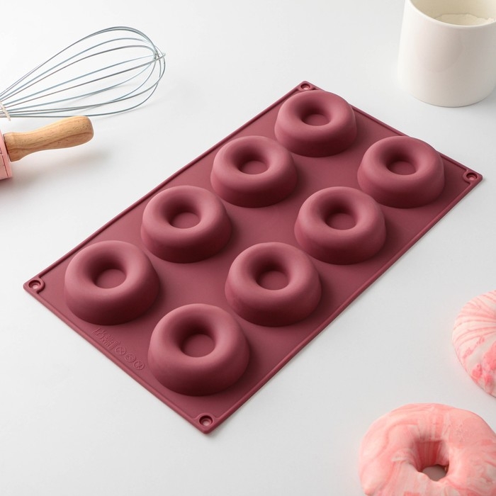 Форма для выпечки Доляна «Сладости. Пончики», 29×17 см, 8 ячеек (d=6 см), цвет МИКС