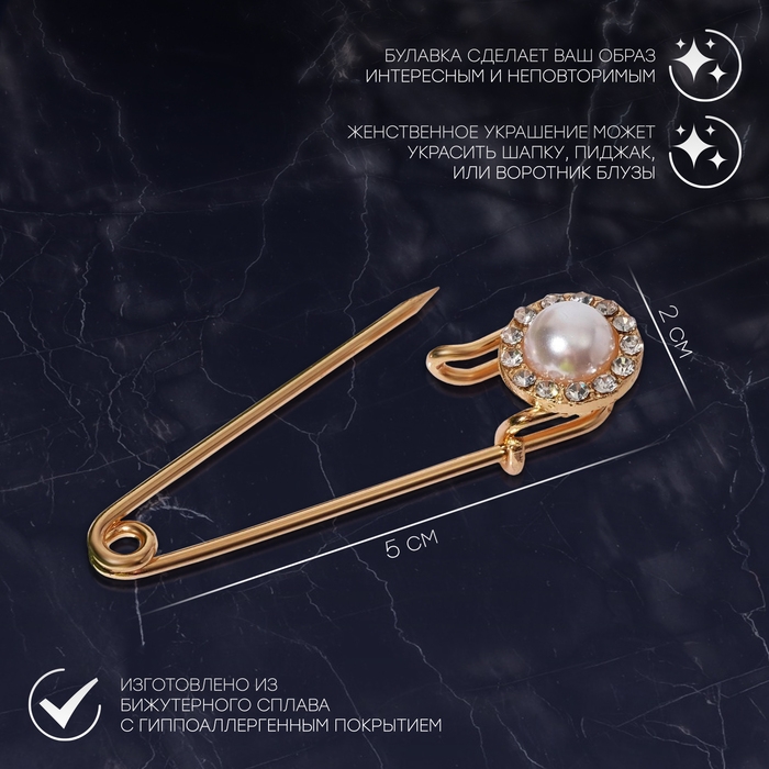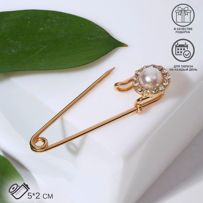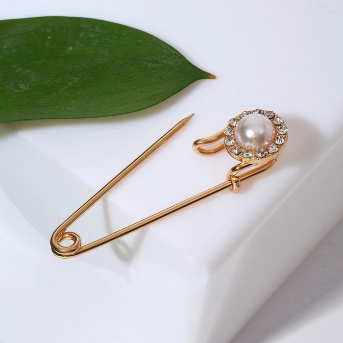 Булавка «Классика», круг, 5 см, цвет белый в золоте