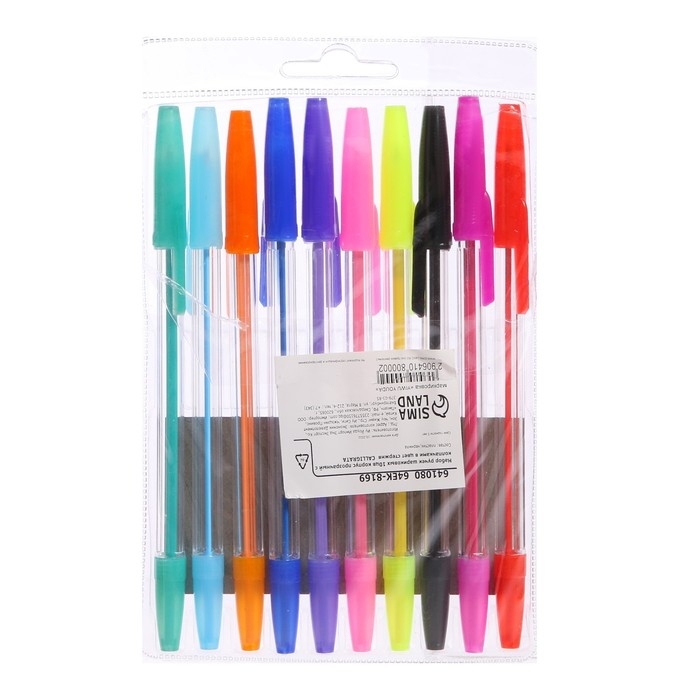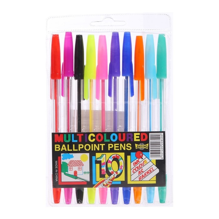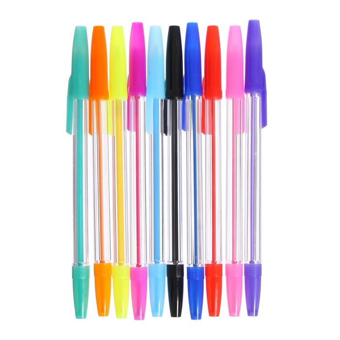 Набор ручек шариковых, 10 цветов, корпус прозрачный, с цветными колпачками