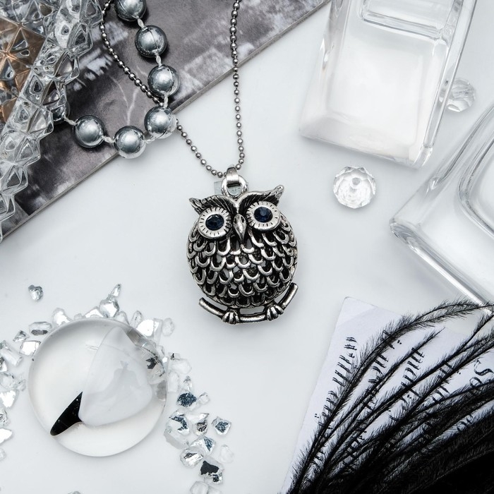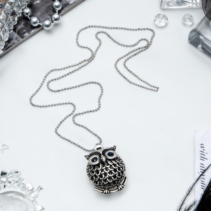 Кулон «Сова круглая» аrt, цвет серебро чернёное, 44 см