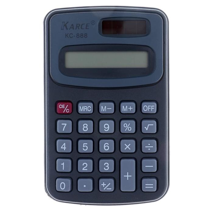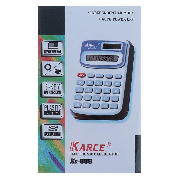 Калькулятор карманный с чехлом 8 - разрядный, KC - 888, работает от батарейки (таблетка Ag 10)