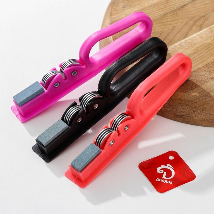 Точилка для ножей Доляна «Острое лезвие», 19×4,5 см, с ручкой и шлифовкой, цвет МИКС