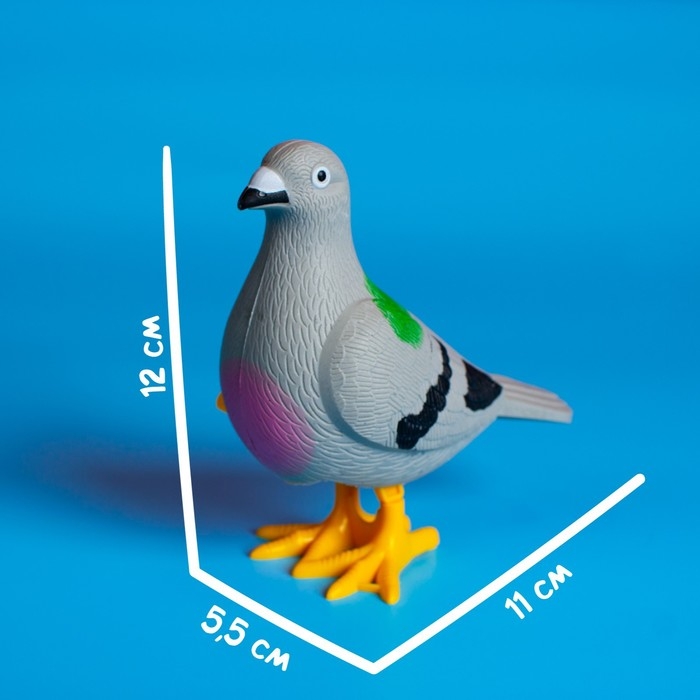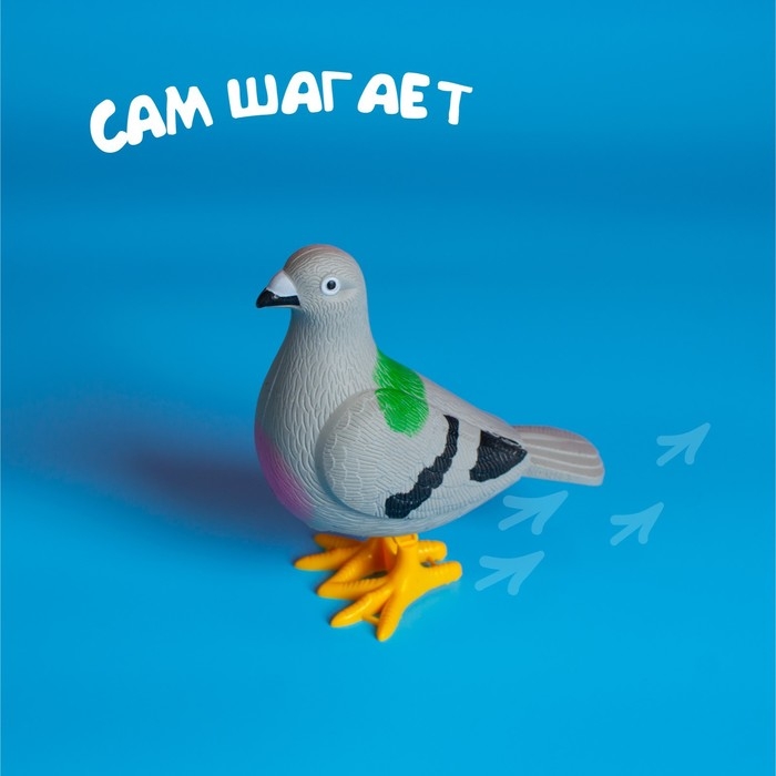 Заводная прыгающая игрушка развеселит детей и позабавит взрослых на вечеринке. Очаровательный голубь двигается от заводного механизма. Чтобы он заработал, его нужно просто завести и отпустить: игрушка резко устремится вперёд.