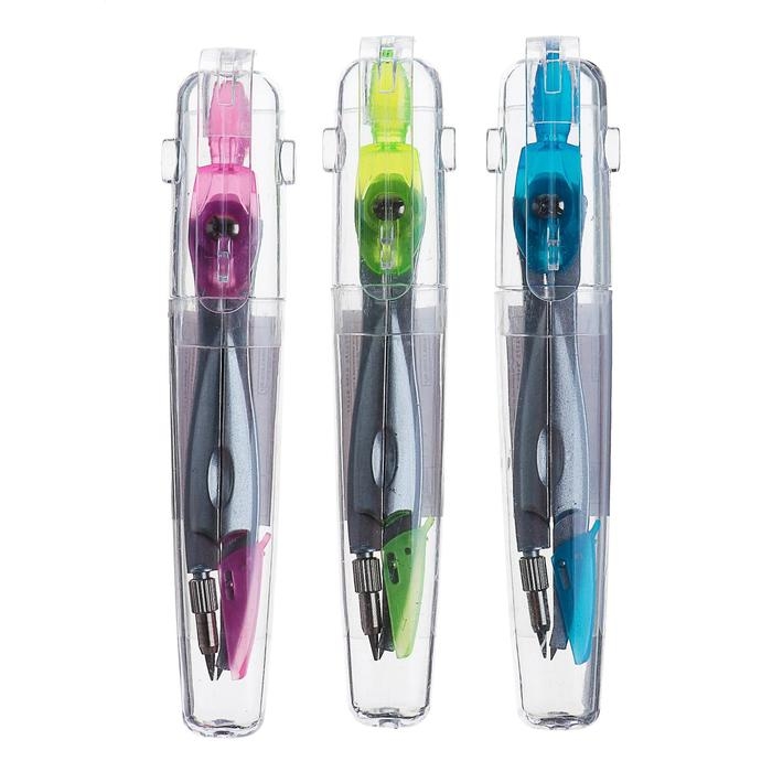 Циркуль металлический 115 мм в пластиковой тубе, с защитным колпачком на иголке, МИКС