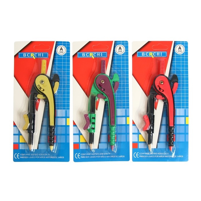 Циркуль пластиковый 145мм с карандашом, на блистере, МИКС