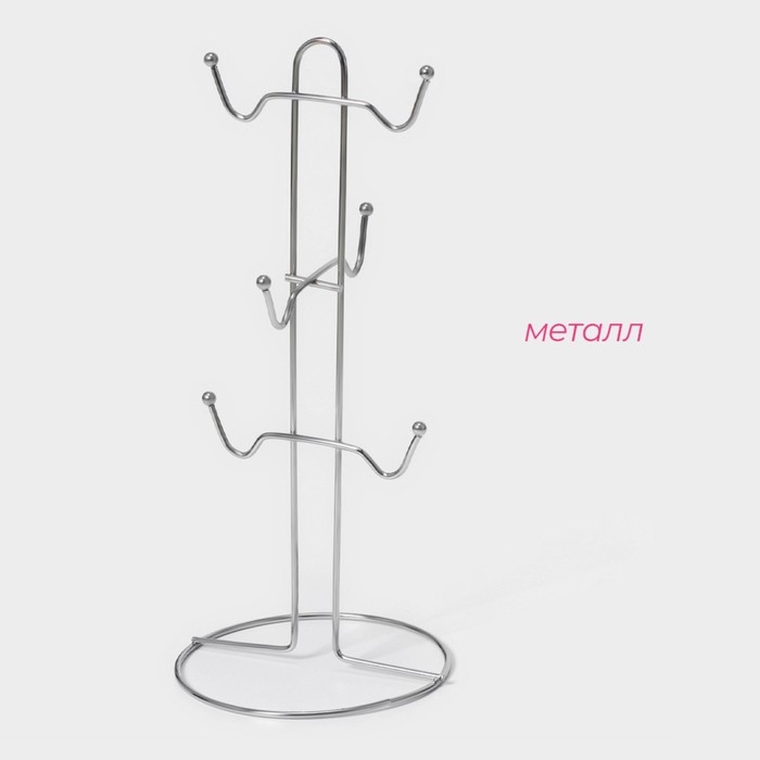 Подставка для кружек на 6 предметов Доляна, 16×16×32 см, цвет хромированный