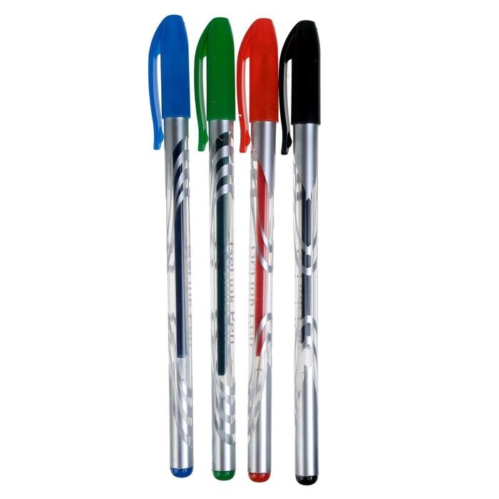 Набор гелевых ручек, 4 цвета: синий, чёрный, красный, зелёный