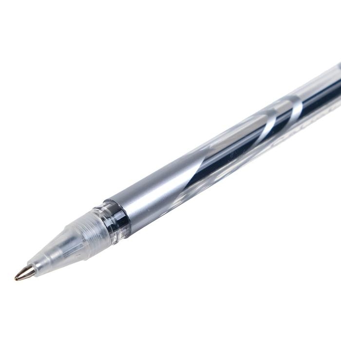Набор гелевых ручек, 12 цветов, корпус чёрный в полоску в стержень, в блистере на кнопке
