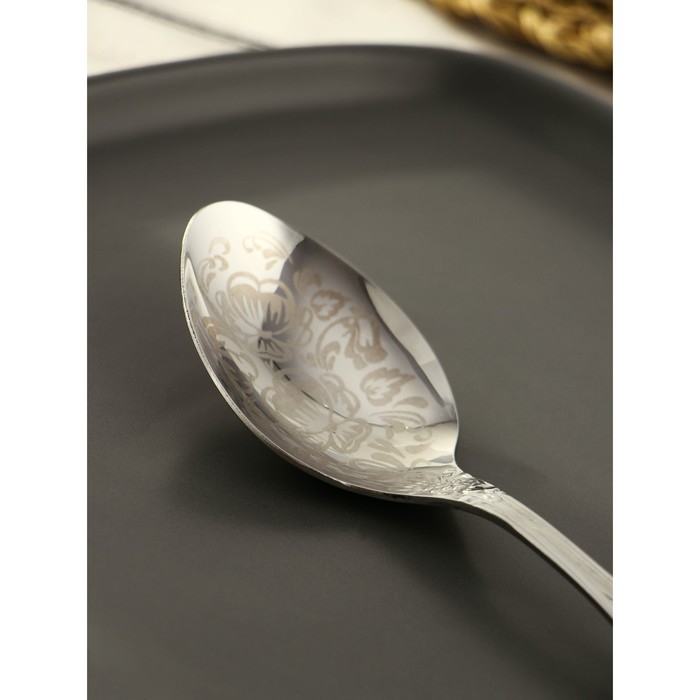 Ложка столовая «Тройка», h=19 см, толщина 2 мм, художественная роспись, цвет серебряный