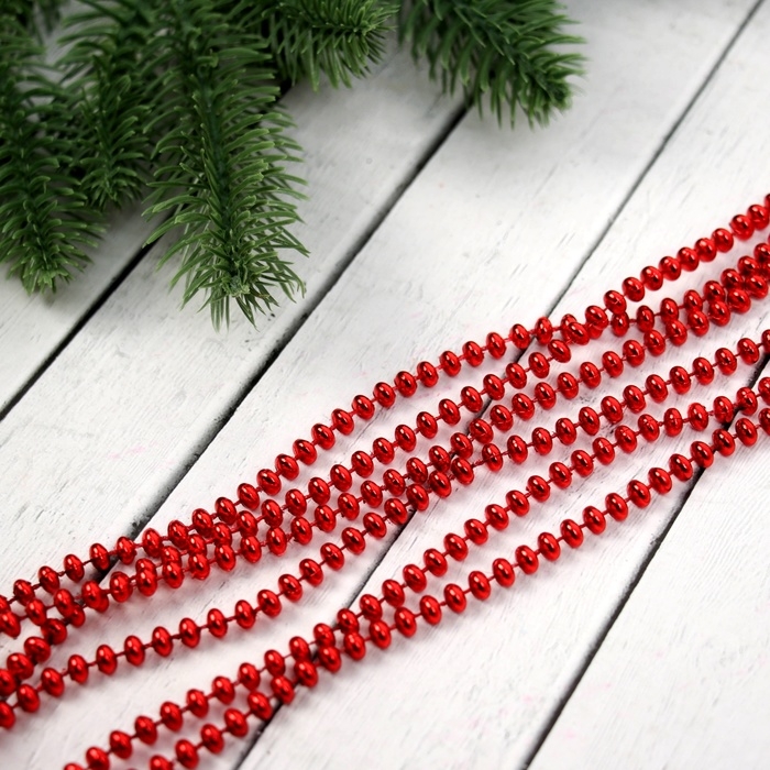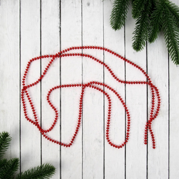Бусы на ёлку 2 м d-4 мм "Бусинки" красный