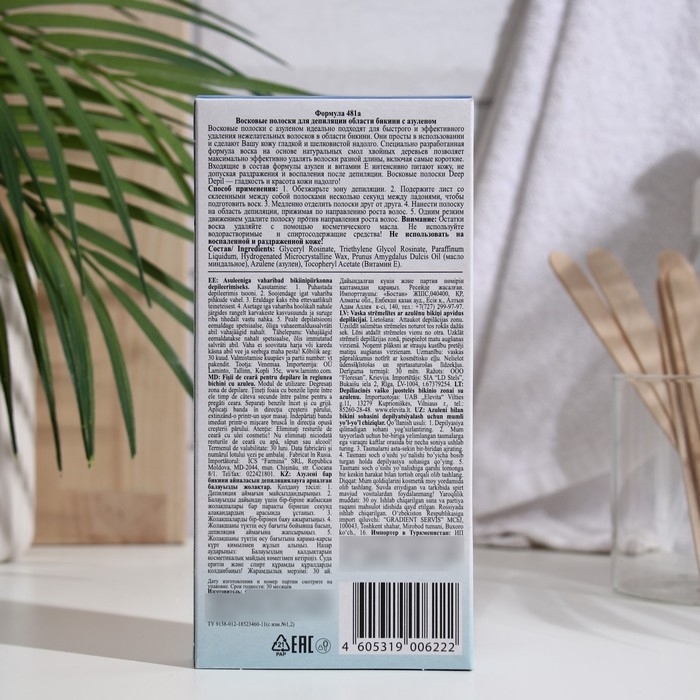 Восковые полоски Floresan Deep Depil для депиляции области бикини, с азуленом, 20 шт.