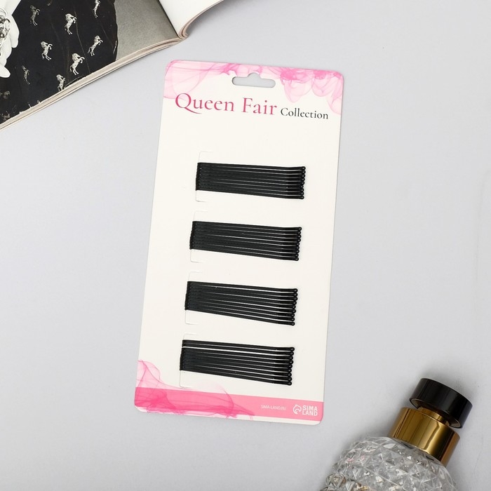 Невидимка для волос "Гладкие" (набор 36 шт) 6 см, чёрный