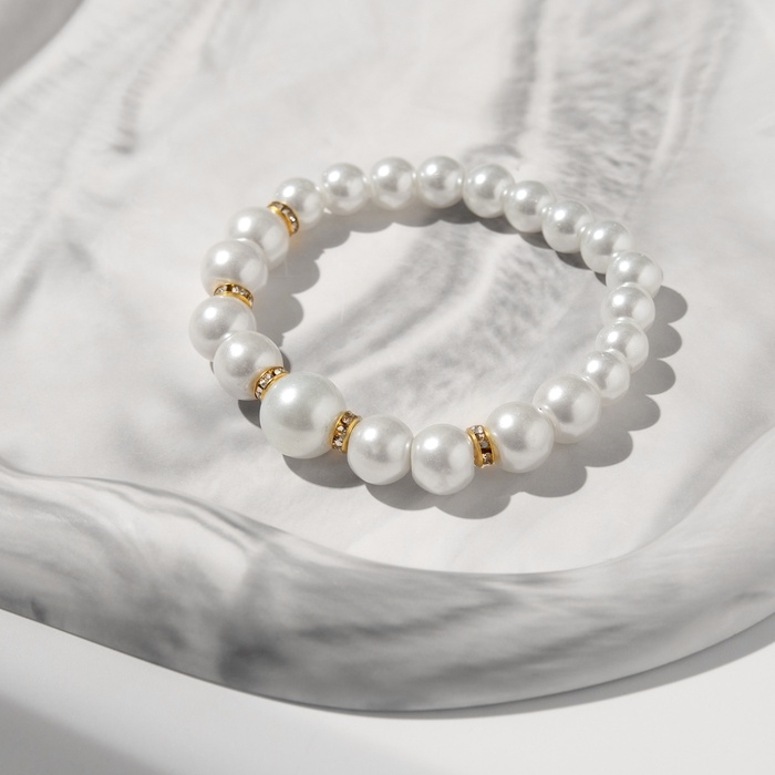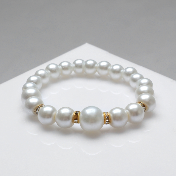 Браслет жемчуг «Подарок моря» с жемчугом, шар № 6,8,10, цвет белый в золоте, d=6,5 см