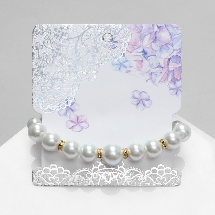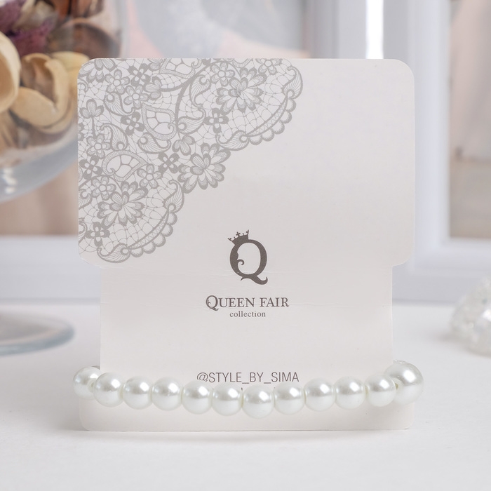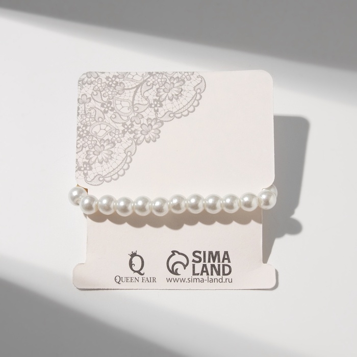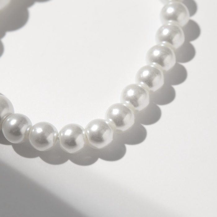 Браслет жемчуг «На леске» сердце, бусины №4, 6, цвет белый в серебре, 16 см