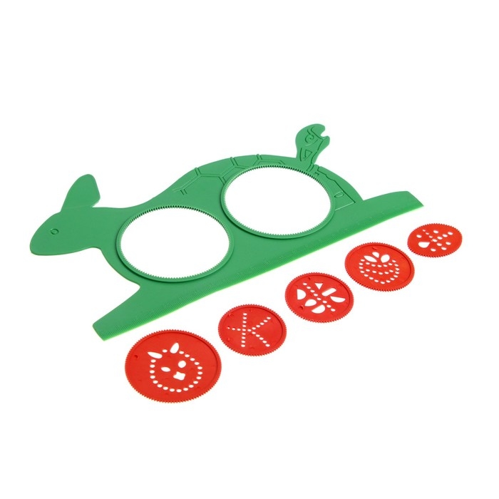 Спирограф — многофункциональная деревянная развивающая игрушка для рисования. Он имеет яркое оформление с тематическими изображениями, состоит из 2 зубчатых колёс с фигурными трафаретами и 5 кругов-шестерёнок.