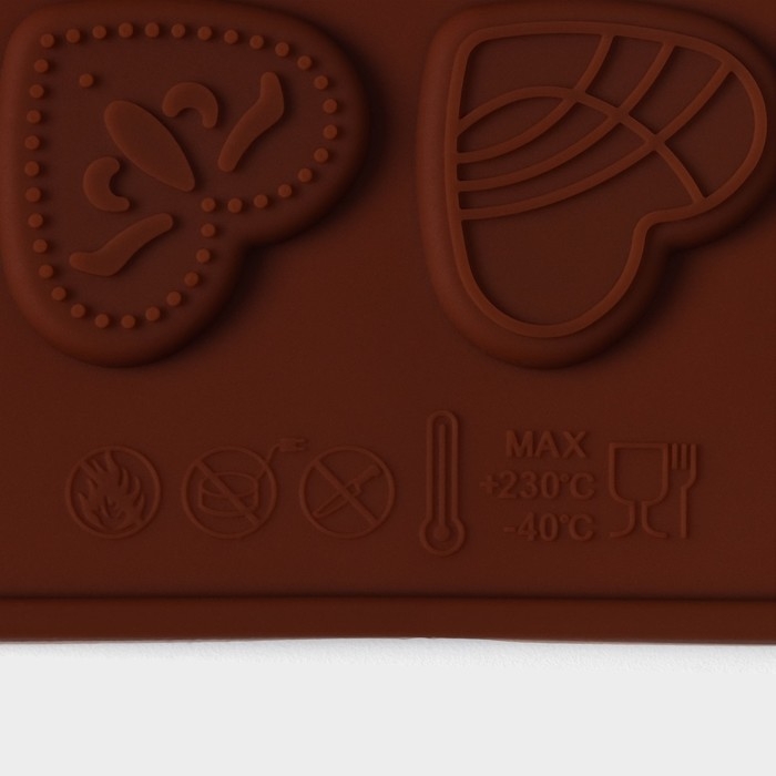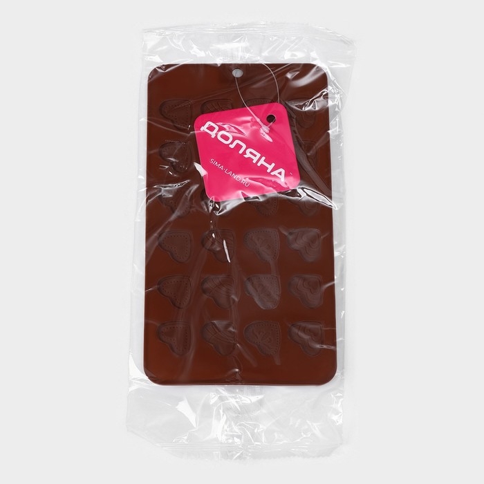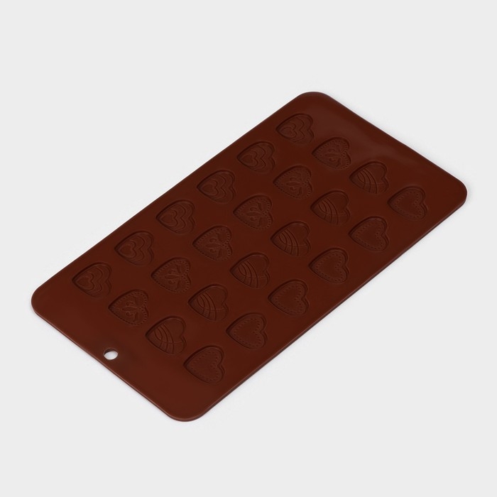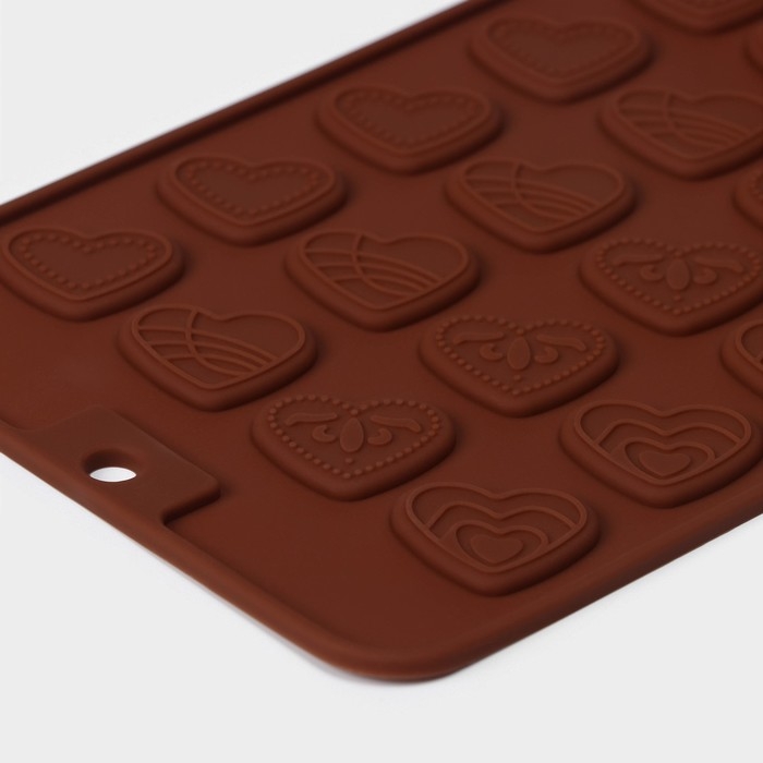 Форма для кондитерских украшений Доляна «Сердечки», силикон, 21×11,5 см, 24 ячейки, цвет коричневый
