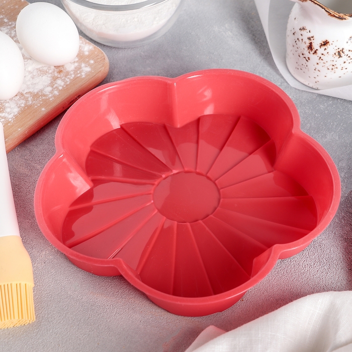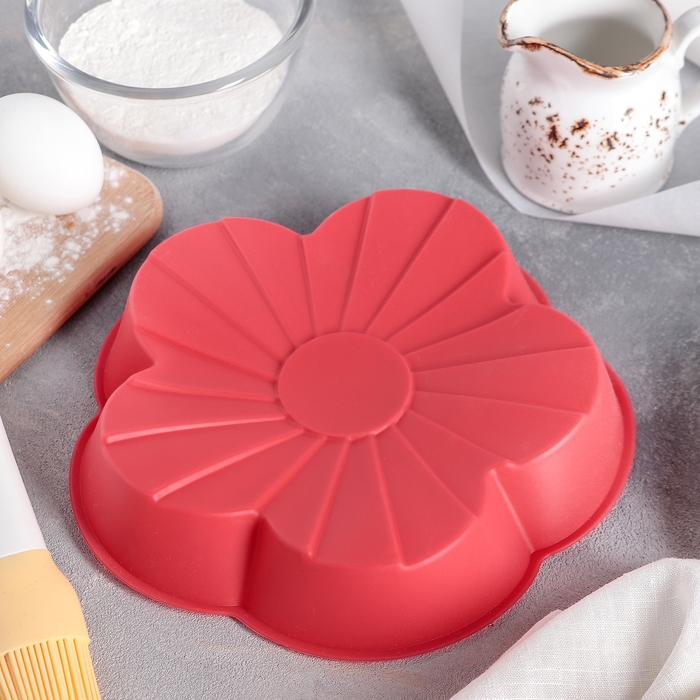 Форма для выпечки Доляна «Цветок», силикон, 20×20×4 см, цвет красный