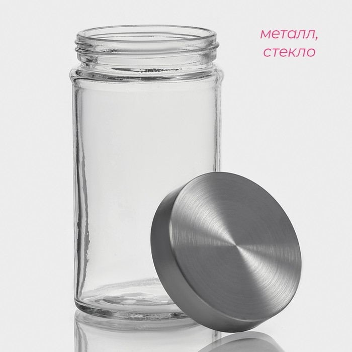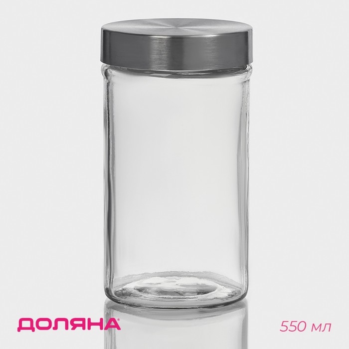 Банка для сыпучих Доляна «Премиум», 550 мл, 15×8 см, с металлической крышкой, стекло, прозрачная