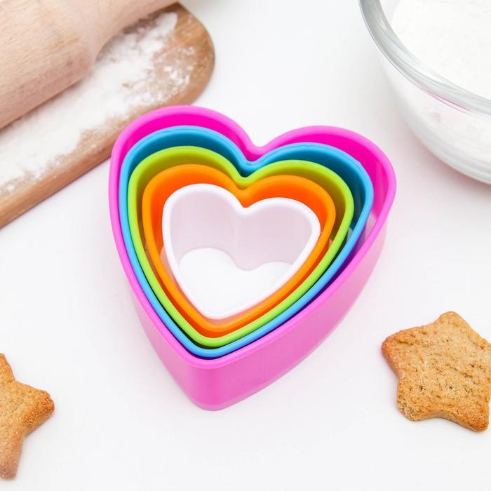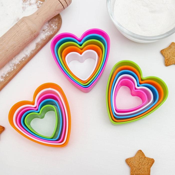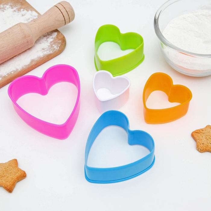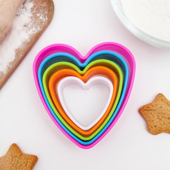 Набор форм для печенья Доляна «Сердце», 5 шт, 10×9×3,5 см, цвет МИКС