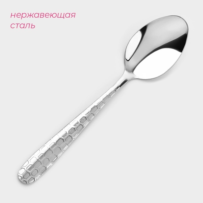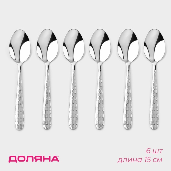 Набор ложек чайных из нержавеющей стали Доляна «Соты», длина 15 см, 6 шт, цвет серебряный