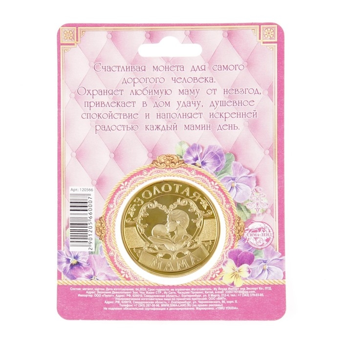 Монета сувенир на День матери «Золотая мама», d=4 см