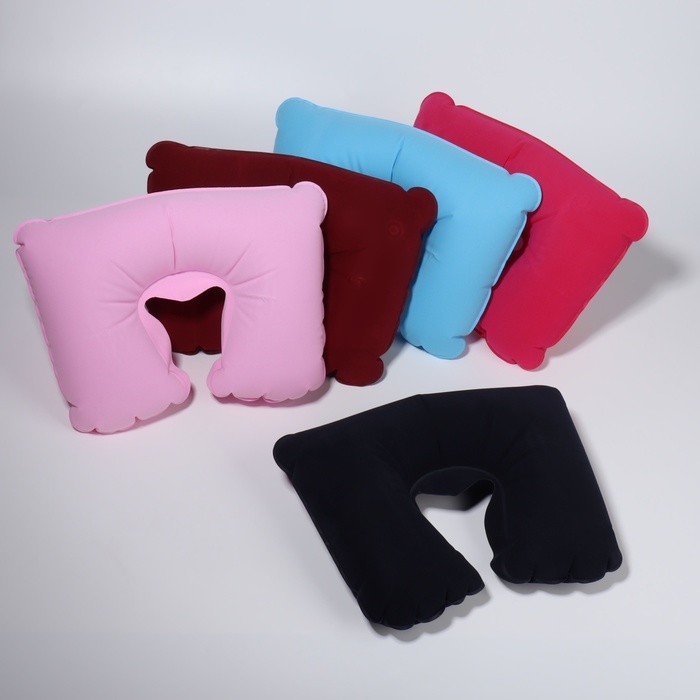 Подушка для шеи дорожная, надувная, 38 × 24 см, цвет МИКС